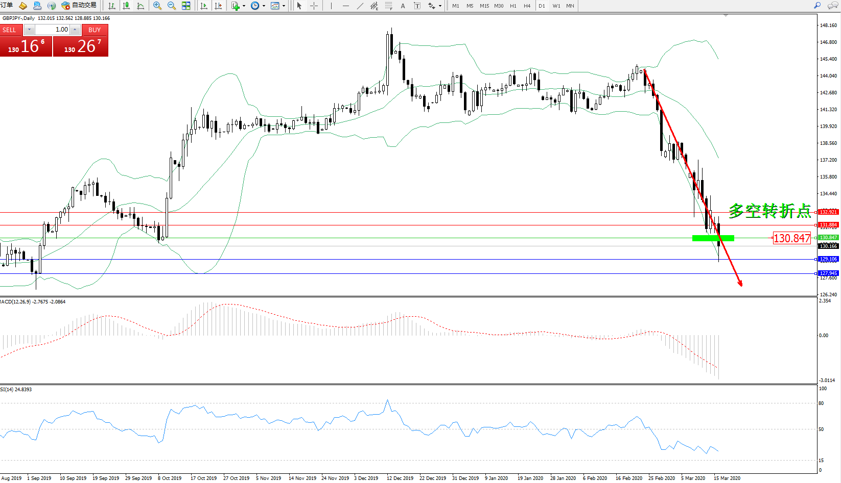 交易策略:130.847下方看跌,目标129.106、127.945