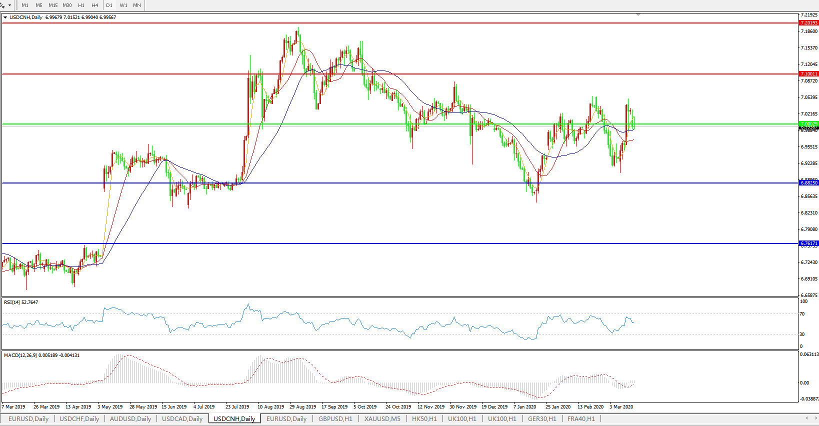 交易策略: 在7.0000之上,看涨,目标价位为7.1000,然后为7.2000。