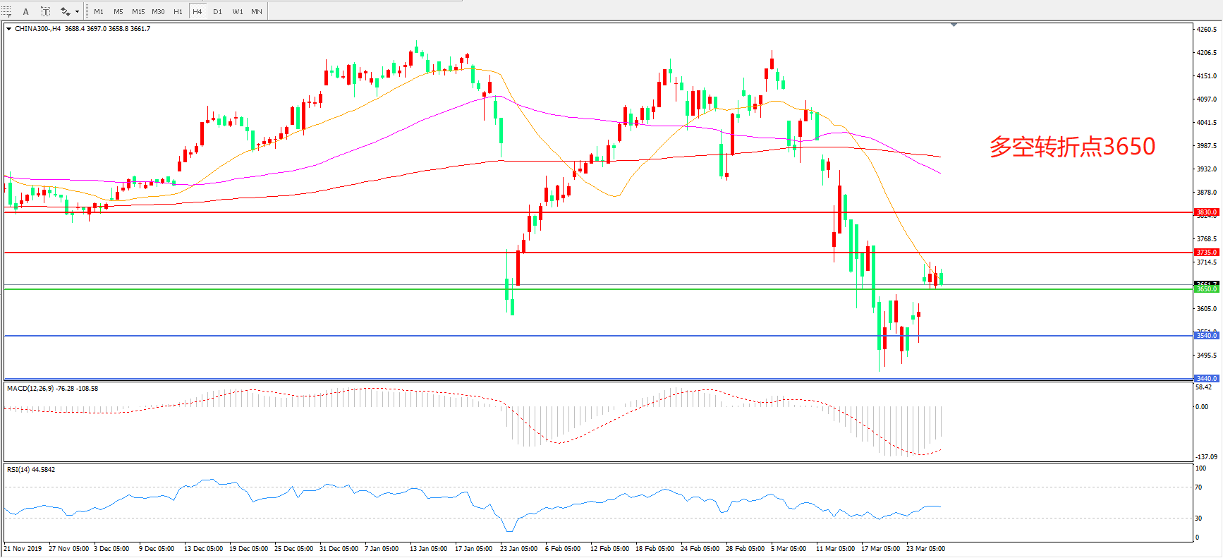 沪深300  CHINA 300   4小时图
