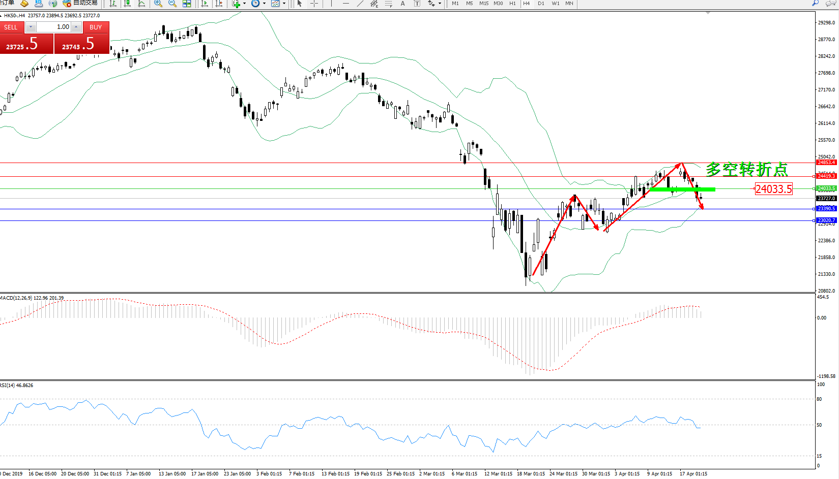 技术点评:高位空头动力持续回撤下移,跌破布林带指标中轨后进入中下轨区间维持震荡,有继续下探态势,布林带指标呈收口走势中,下轨附近短期支撑节点近期或将触及,下行趋势正在形成中,MACD指标处于0轴线上方多头区域持续横盘整理后有回撤下移迹象,RSI指标处于多头区域弱势整理后开始回撤下移,破50均衡线进入空头区域弱势整理徘徊;