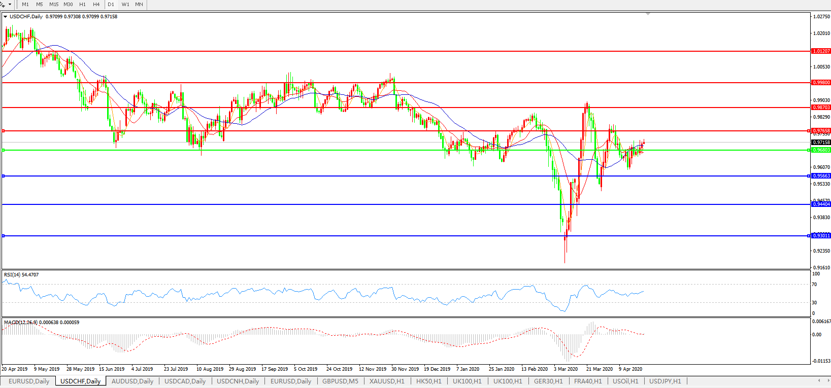 交易策略:0.9680上方看涨,目标0.9765、0.9870