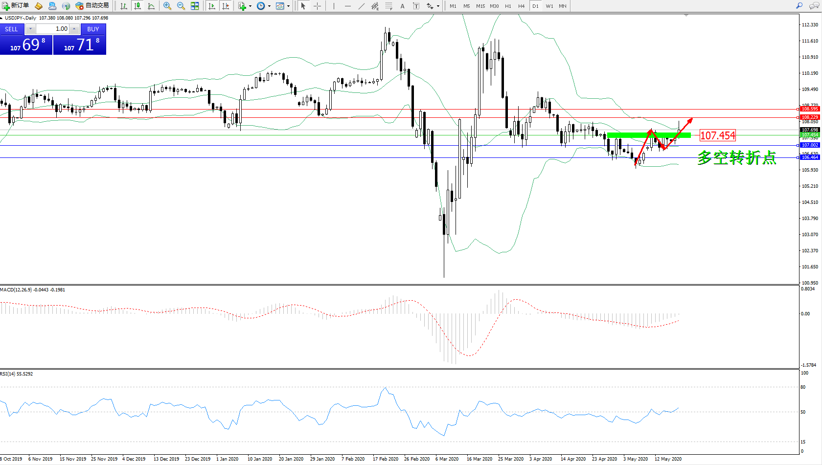 美元兑日元上涨0.34%107.71;盘中一度触及413日以来最高水平108.09;关于一支试验性疫苗显示出新冠病毒免疫反应迹象的报道推动风险偏好反弹。隔夜以来美元指数整体承压,但美元兑日元汇价仍是稳中有升;原因在于推动美元走低的主因是全球风险偏好转好,而这令避险货币日元也遭遇了变本加厉的抛售。日本央行决定在本周五召开特别政策会议,内容是敲定向银行也提供更多融资便利措施的方案,此举自然被视作日本央行进一步扩大宽松力度增加货币供应量之举,这也令日元汇价额外承压。