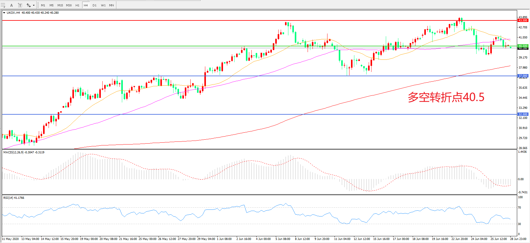 交易策略: 在40.50之下看跌,目标37.00 32.50