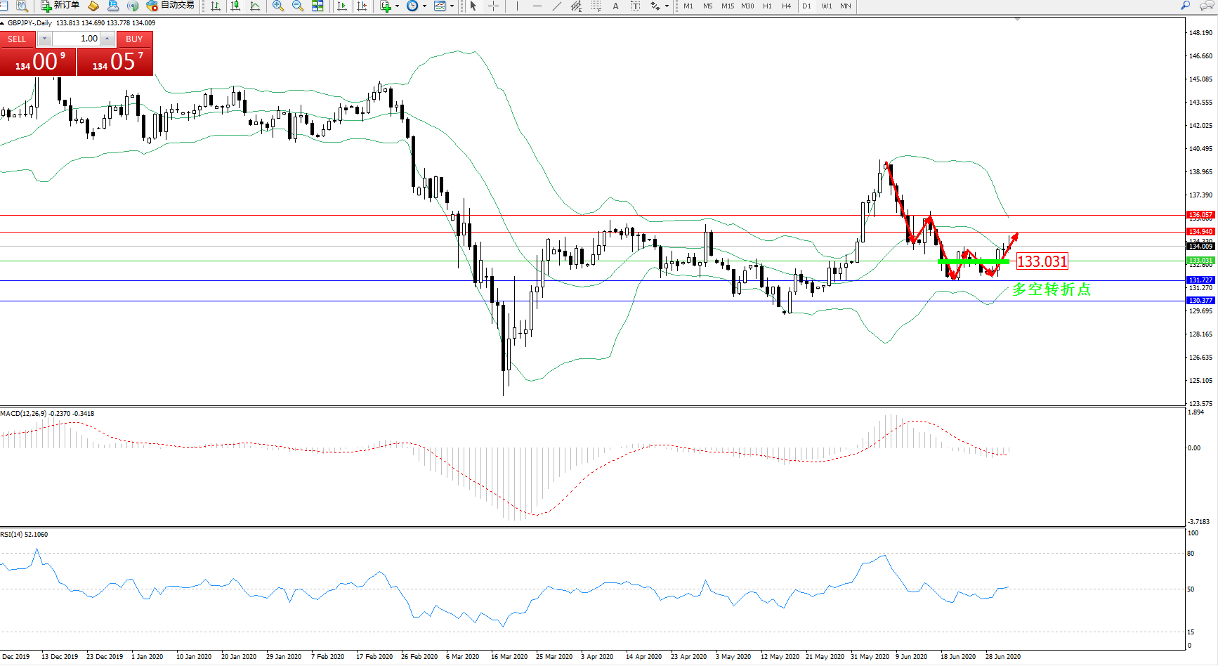 英镑兑日圆弱势震荡134.103附近,尽管经济前景黯淡,但英国资本市场仍有复苏希望,今年第一季度,英国国内生产总值出现了自1979年以来最严重的收缩,贸易逆差扩大到211亿英镑(264亿美元);目前英国股市较摩根士丹利资本国际世界指数(MSCI World index)19%的折让,而2002年以来的平均折让幅度为7%,这意味着未来12个月有很大的上涨潜力;英国将受益于全球经济复苏的有利前景,预计美元将下跌,因避险资金流向发生逆转,且11月美国总统大选前政治不确定性上升。