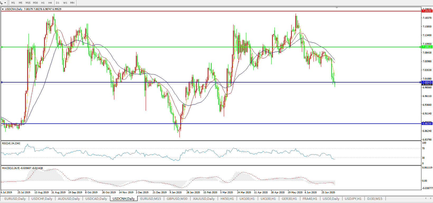备选策略: 在7.1000之上,看涨,目标价位为7.2000,然后为7.3000。