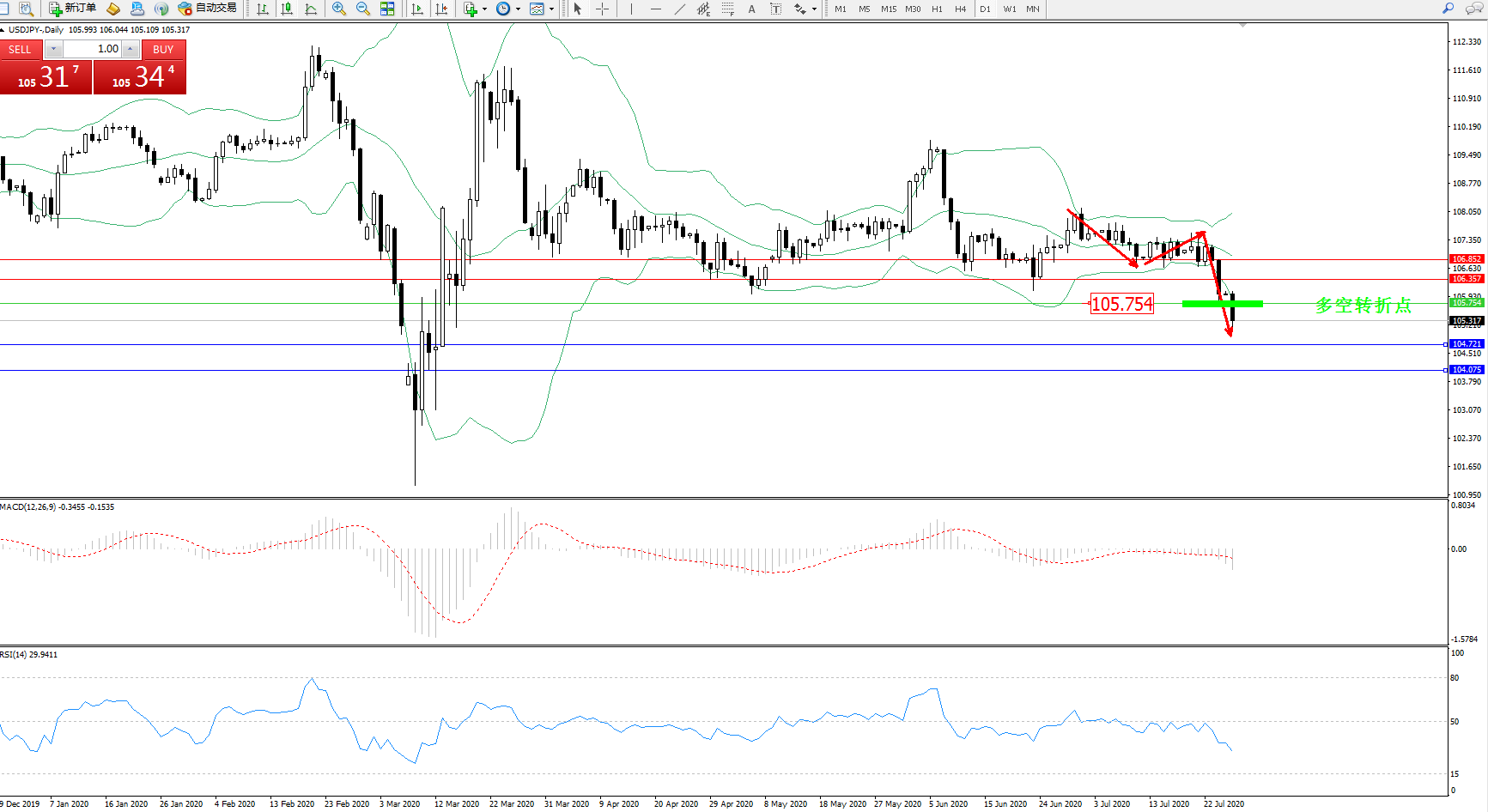 多空转折点:105.754