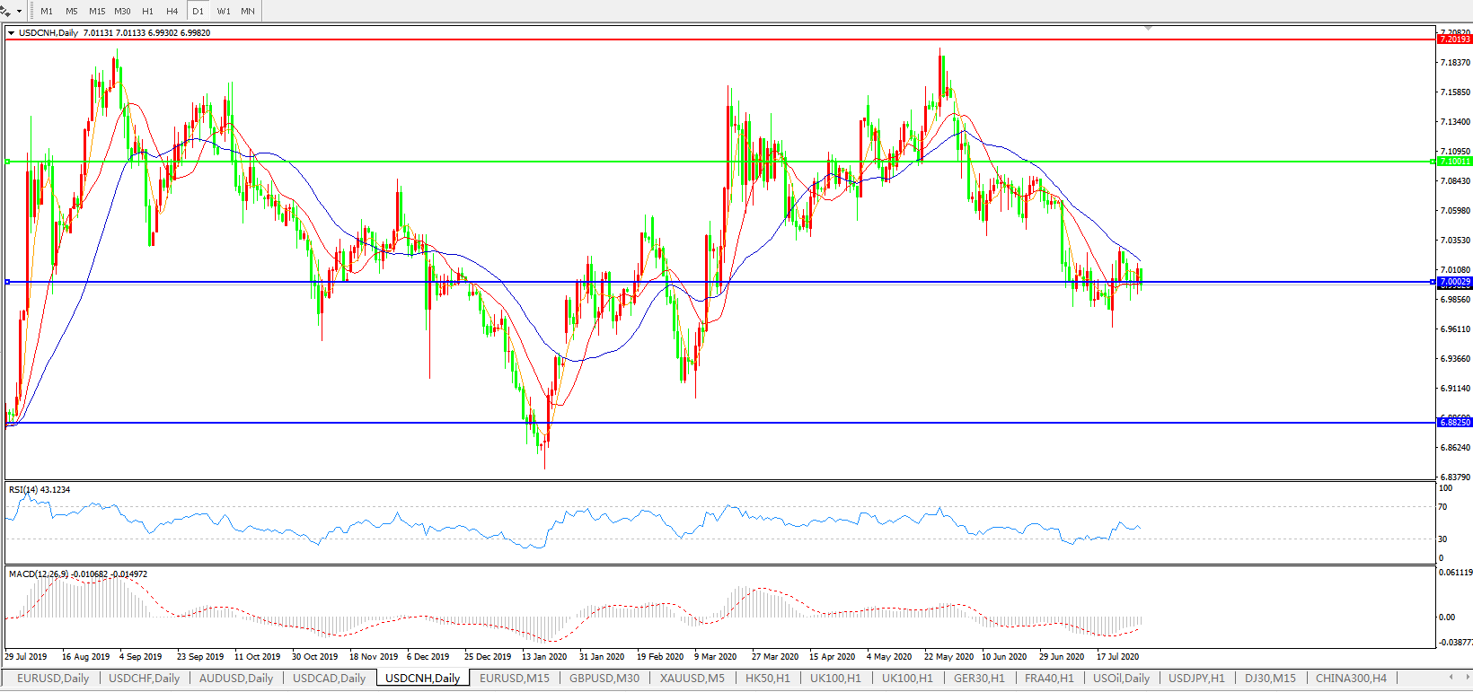 美元兑人民币USDCNH 日线图: