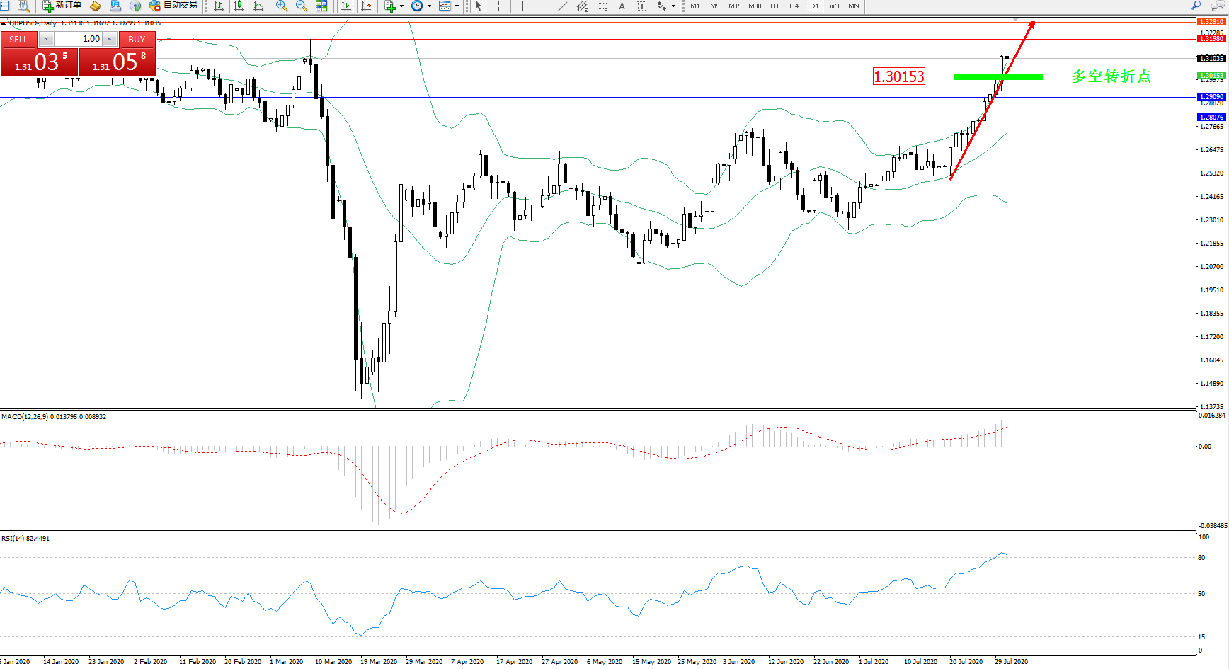 多空转折点:1.30153