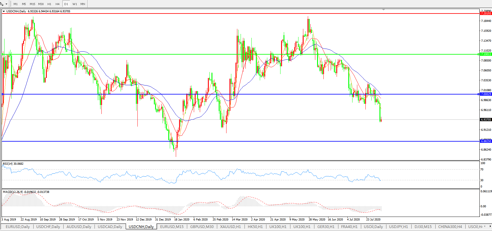 美元兑人民币USDCNH    日线图: