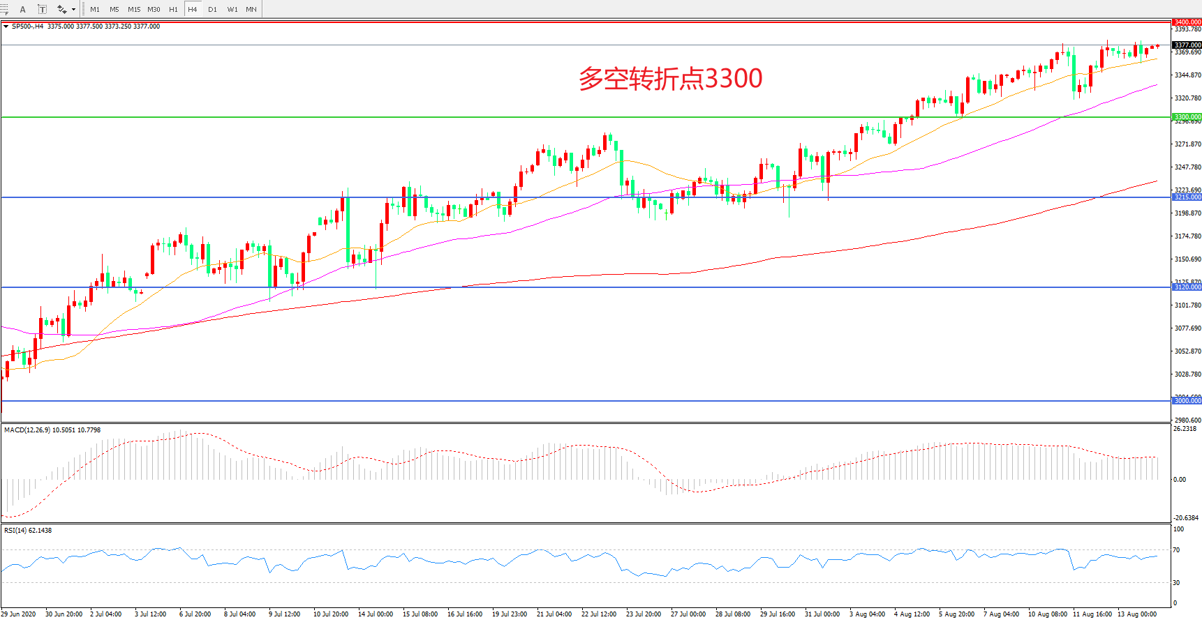 多空转折点:3300.00