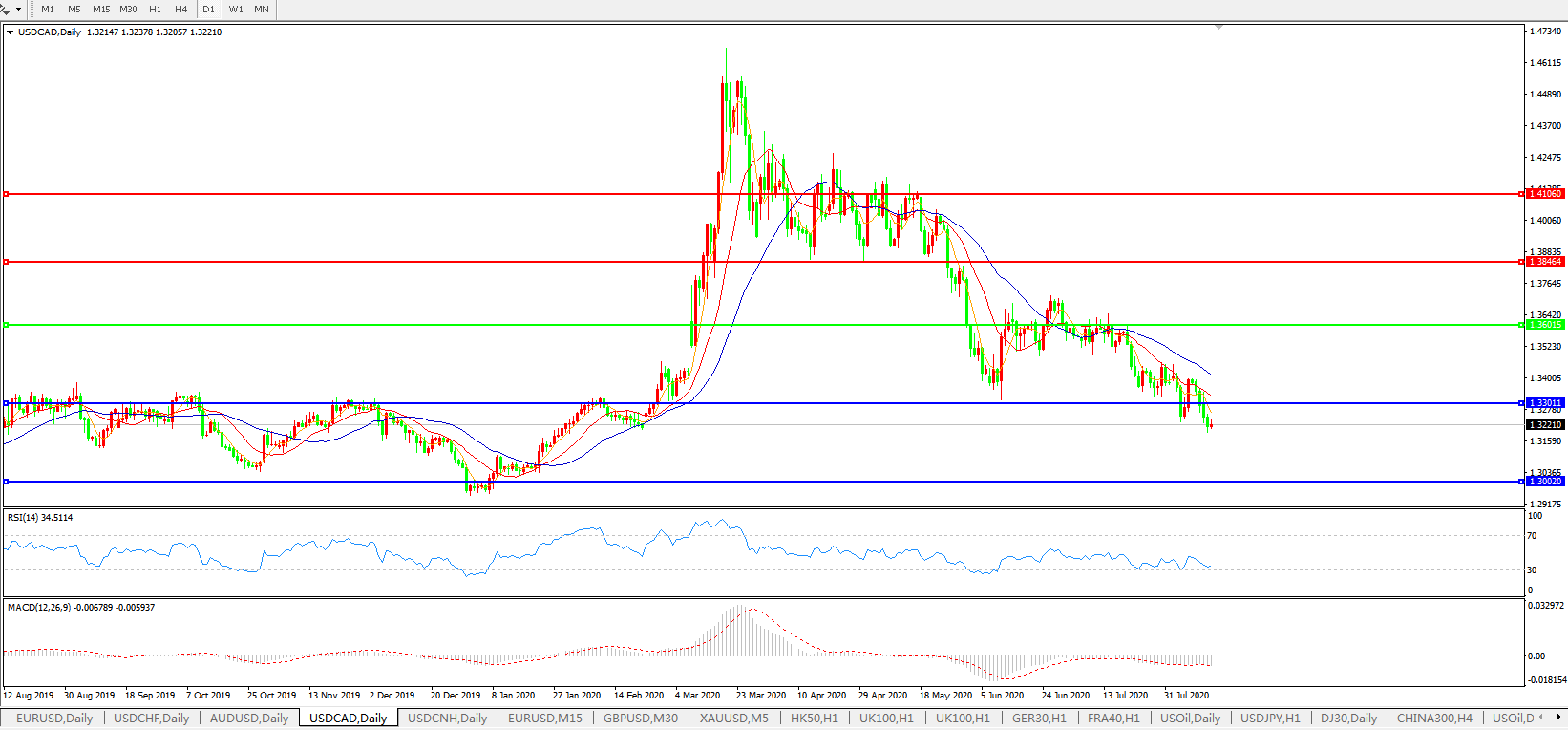 美元兑加元USDCAD    日线图: