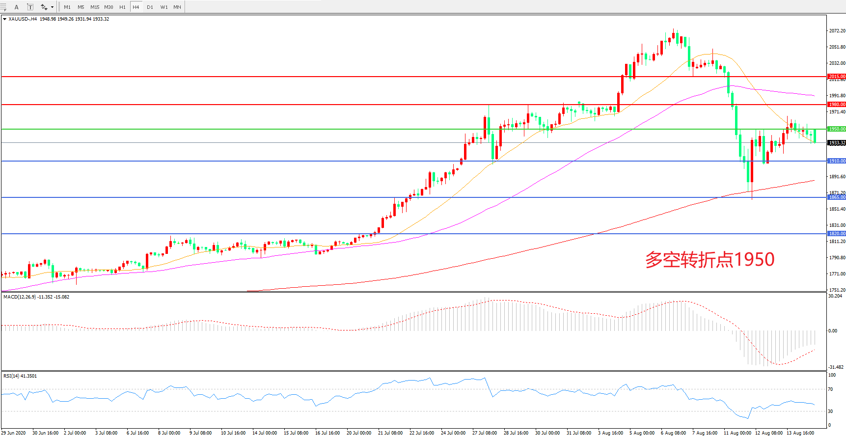 备选策略:   在1950.00之下看跌,目标1910.00   1865.00