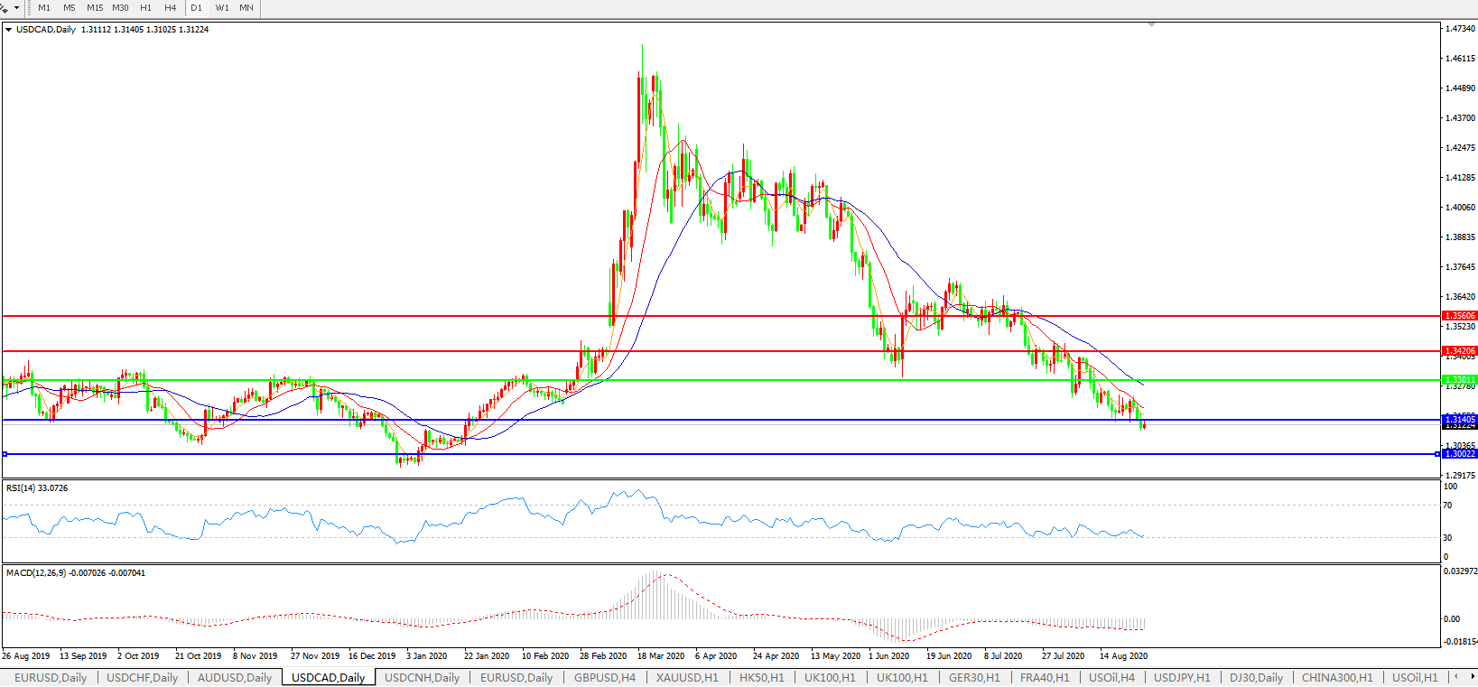 美元兑加元USDCAD    日线图: