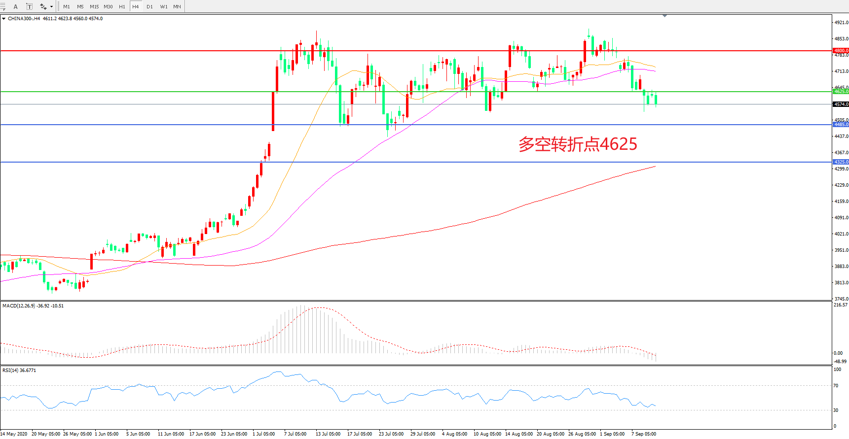 多空转折点:4625.00