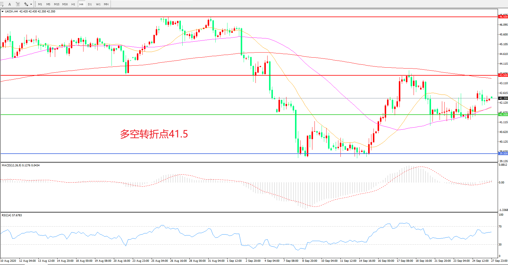 交易策略: 在41.50之上看涨,目标43.50 46.50