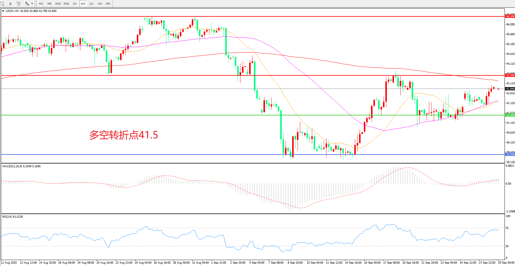 交易策略: 在41.50之上看涨,目标43.50 46.50