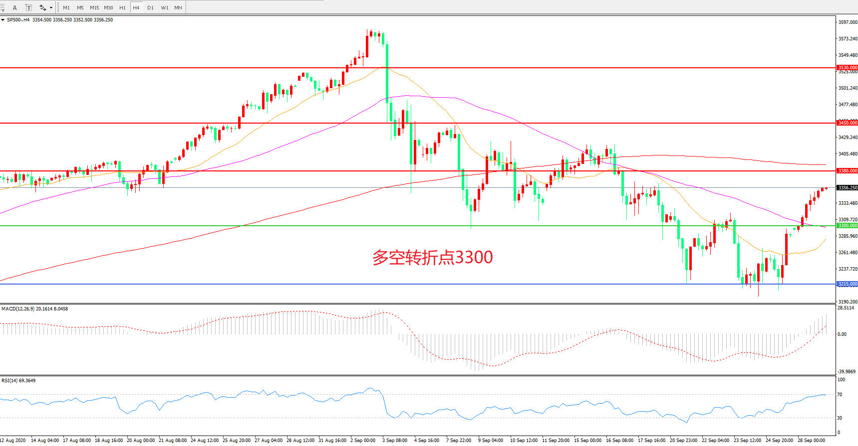 多空转折点:3300.00