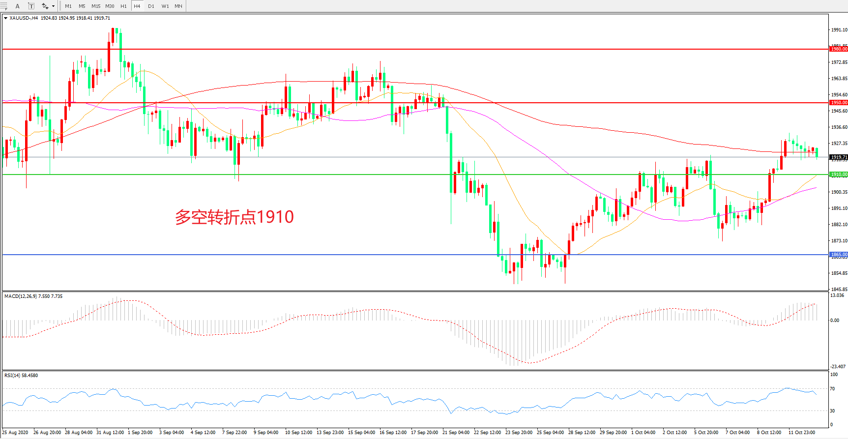 多空转折点:1910.00