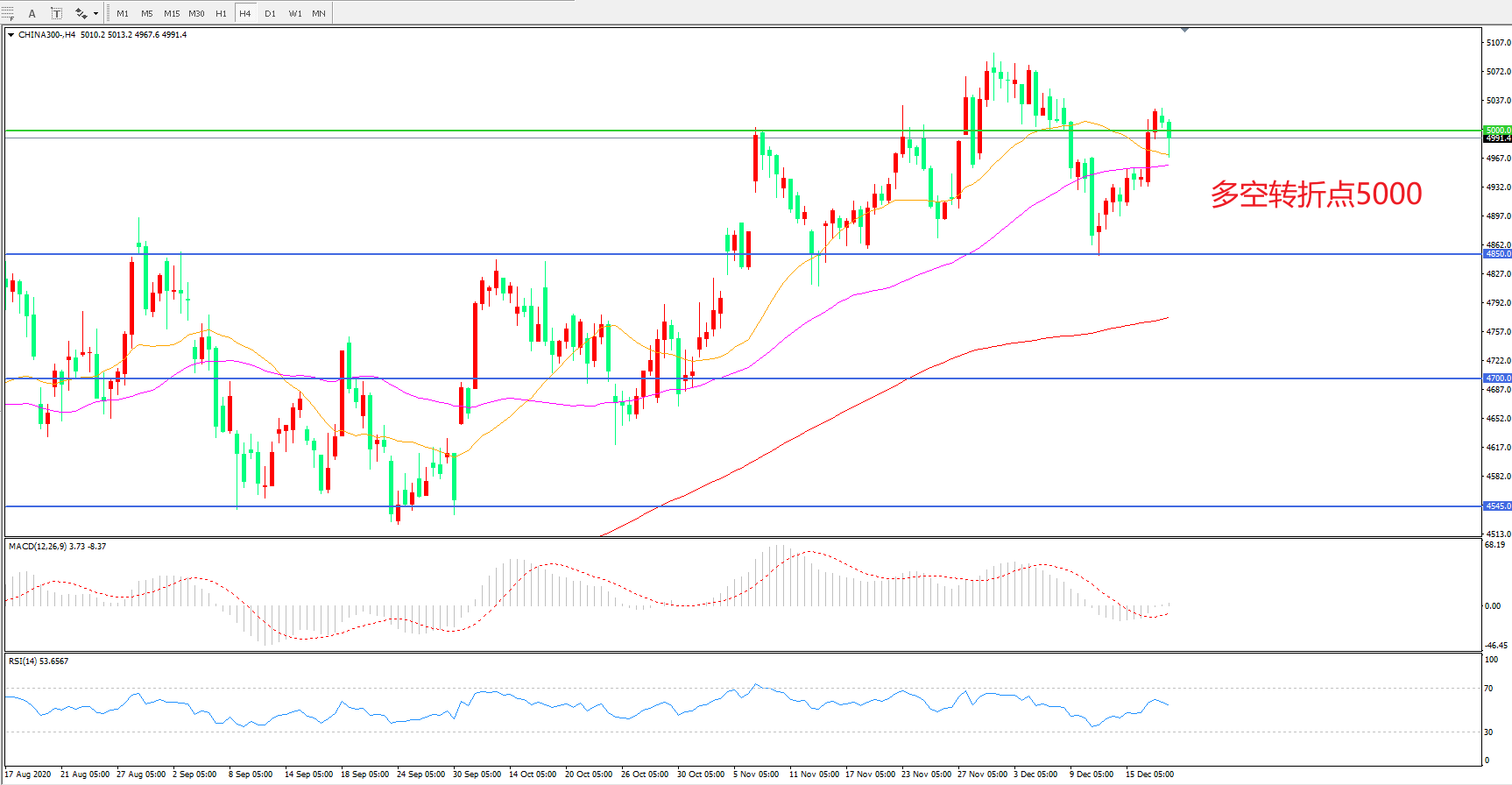 交易策略:在5000.00之上看涨,目标5080.00 5130.00
