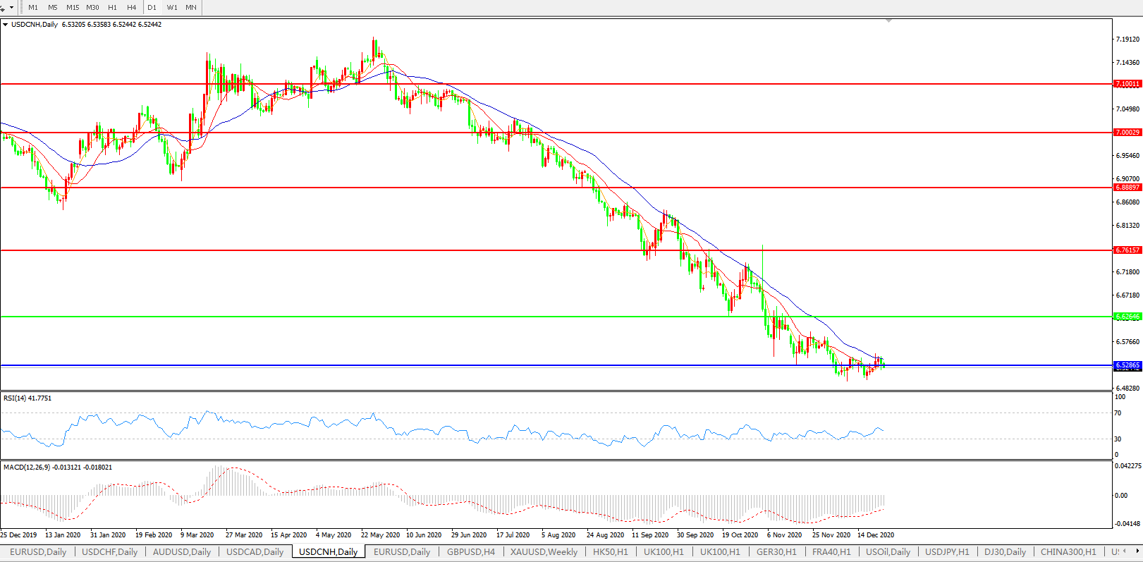 备选策略: 在6.6265之上,看涨,目标价位为6.7615,然后为6.8889。