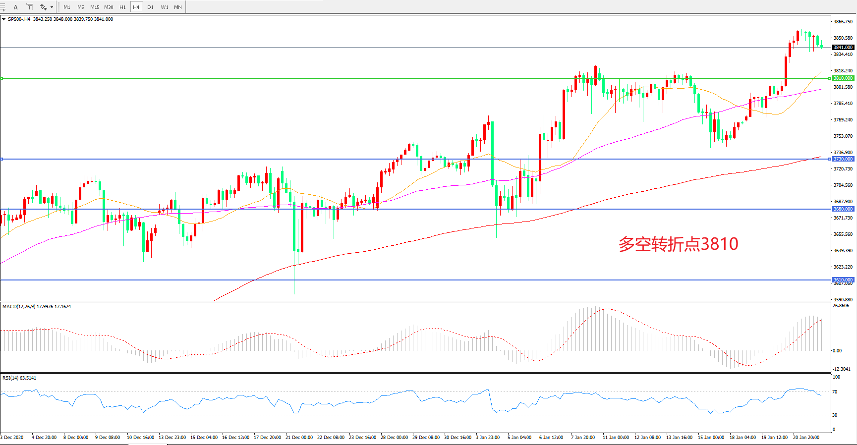 多空转折点:3810.00