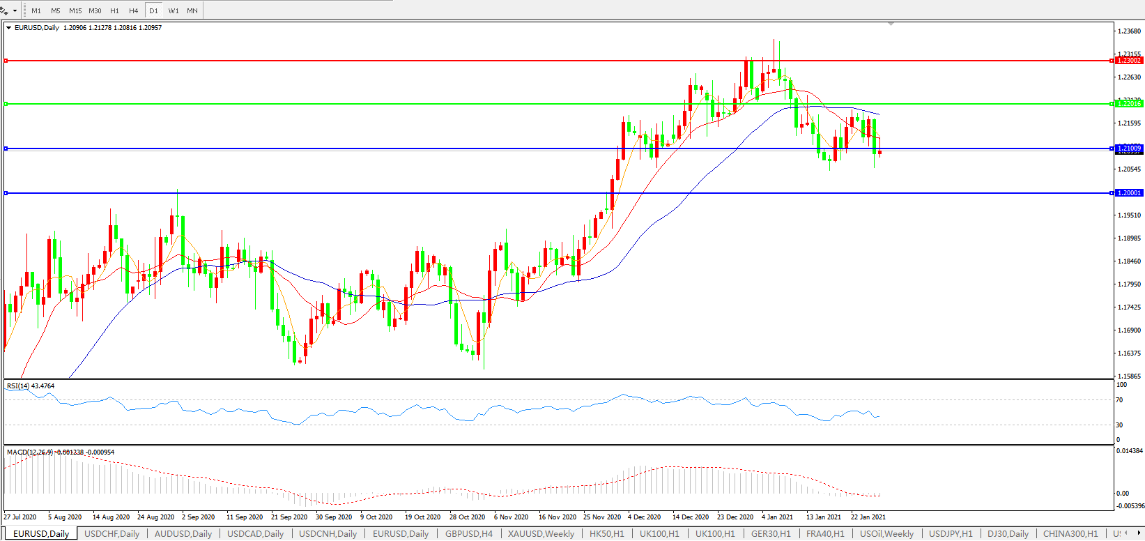 欧元兑美元EURUSD 日线图: