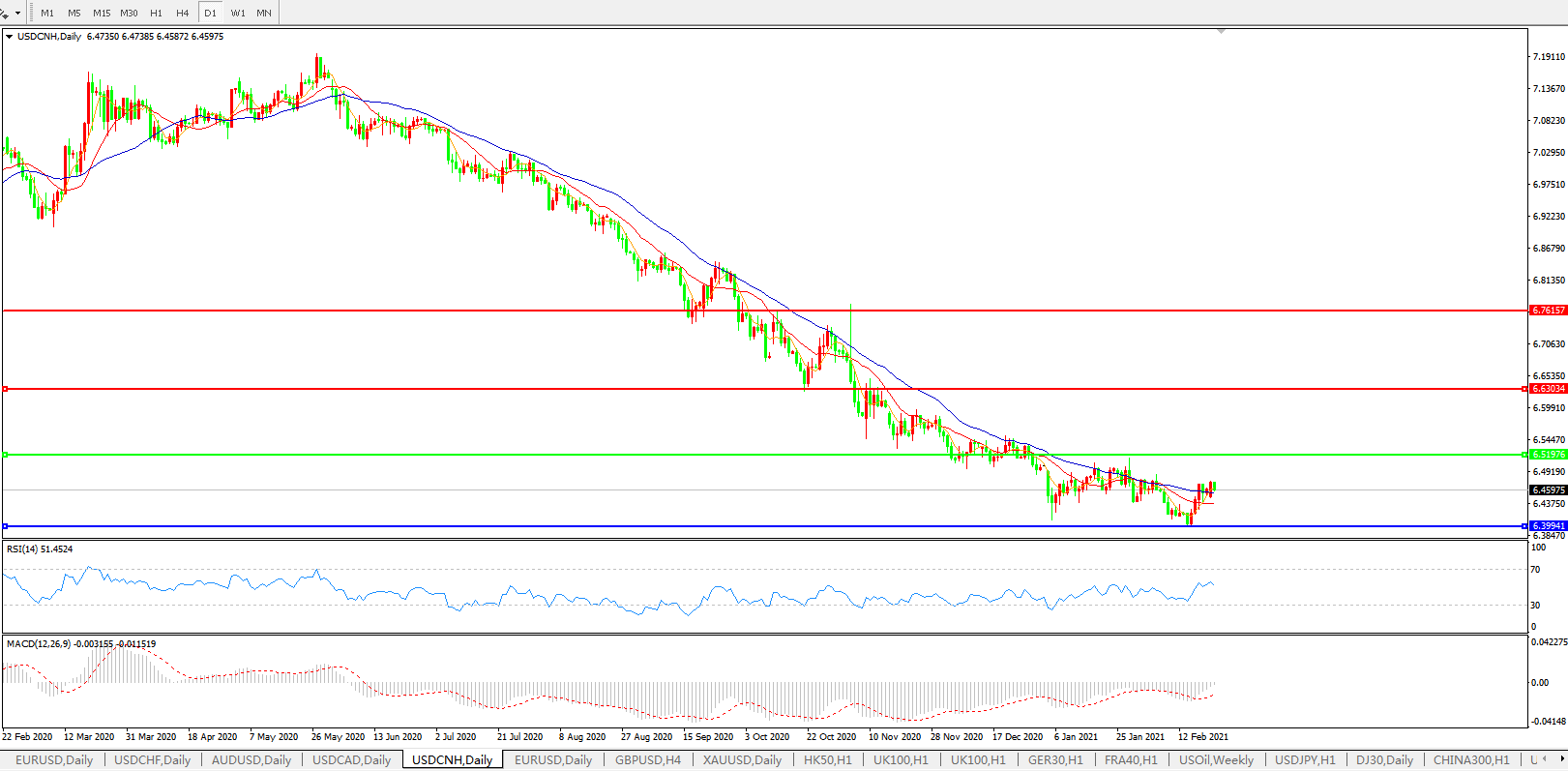 交易策略: 在6.5200之下,看跌,目标价位为6.4000,然后为6.2000。