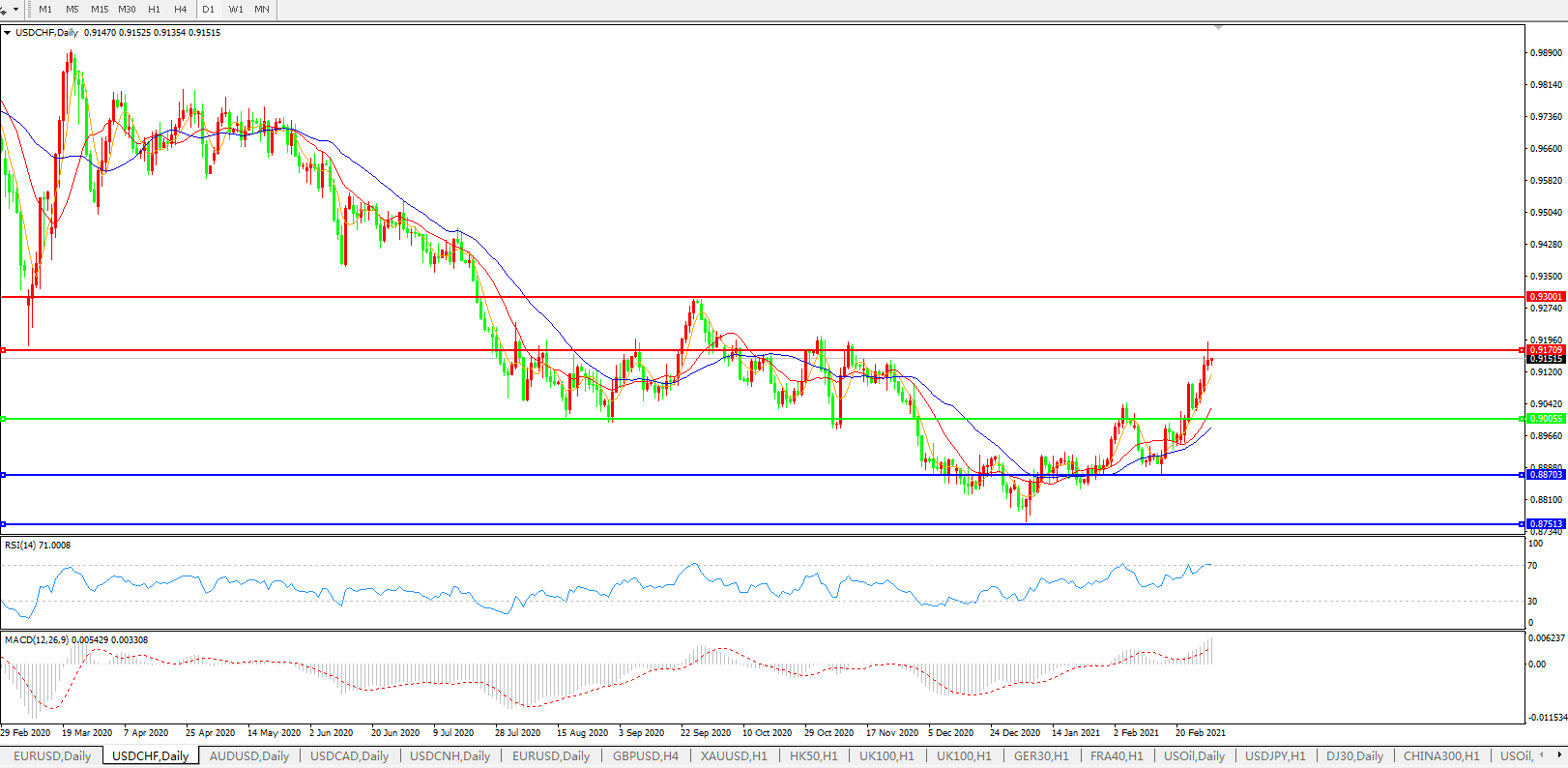 美元兑瑞郎USDCHF    日线图: