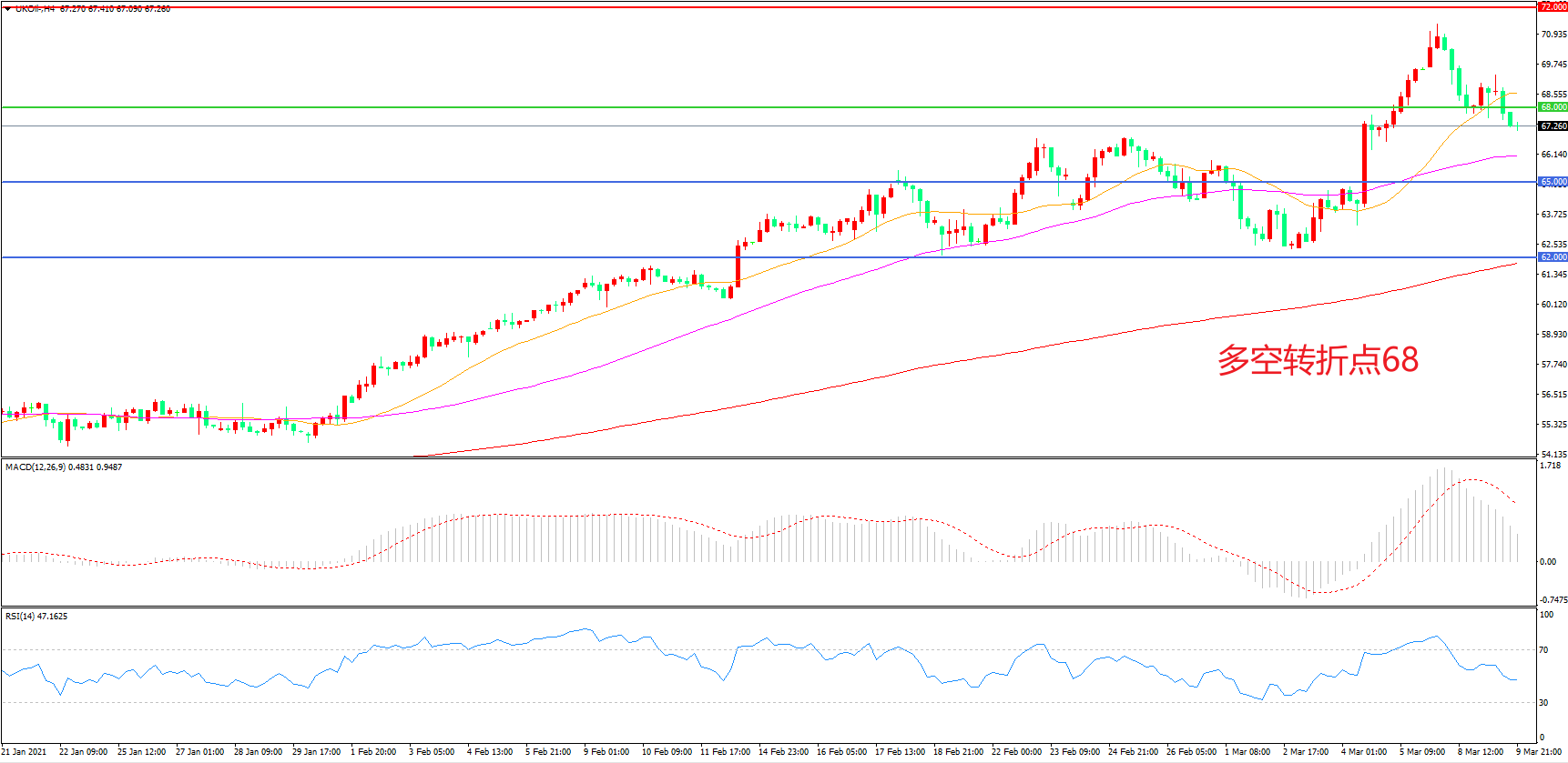 近期,市场呈现了明显的回调行情,显然原油市场多头也开始有主动获利离场现象出现,在美国通过1.9万亿刺激之后,市场对于全球通胀的预期更加明确,也对于美联储未来可能收紧流动性的预期更加明确,这是美元涨原油价格跌的重要原因。从供需的角度来看,原油价格供应趋紧是确定的,但如果宏观市场的风向改变,那么油价的走势可能就会更多的考虑大环境的变化。