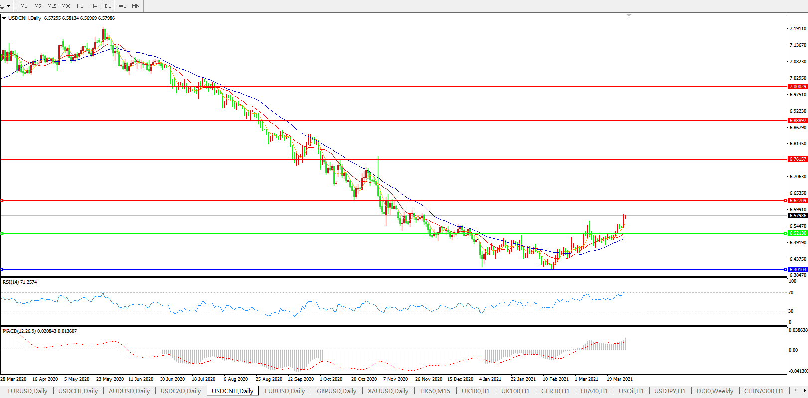 交易策略: 在6.5200之上,看涨,目标价位为6.6300,然后为6.7615。