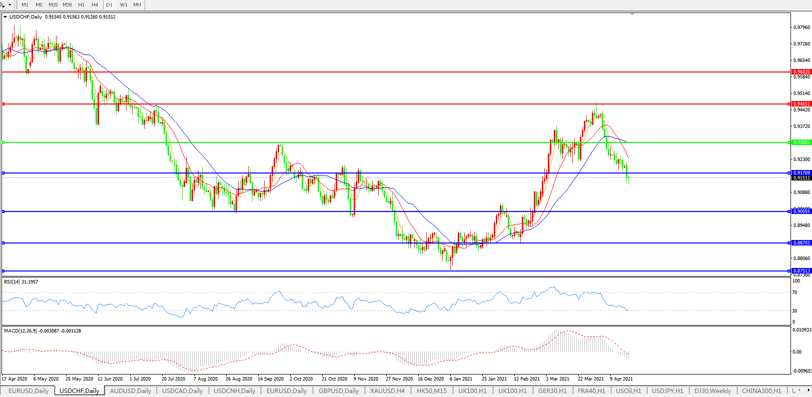 美元兑瑞郎USDCHF    日线图: