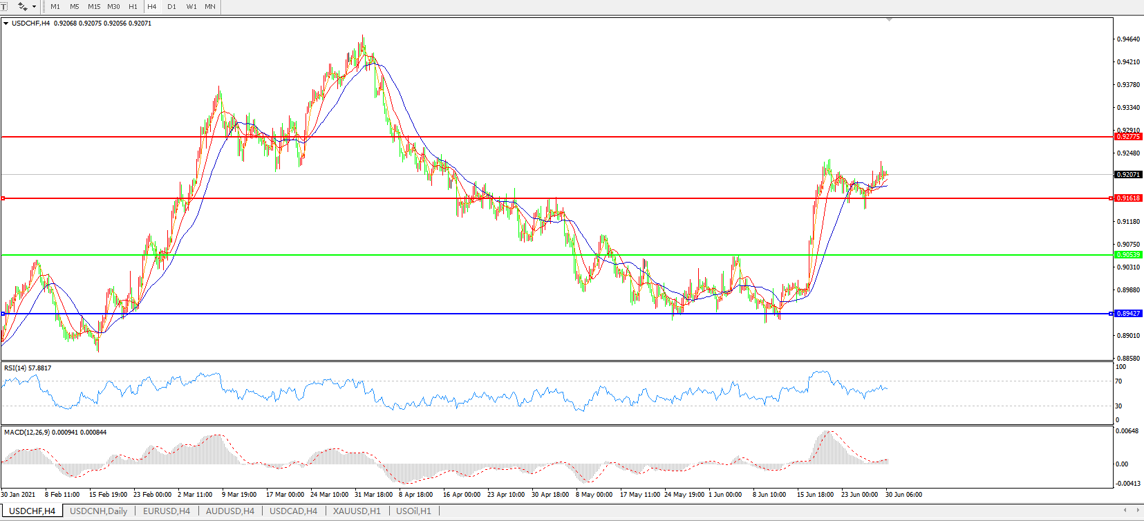美元兑瑞郎USDCHF    4小时图: