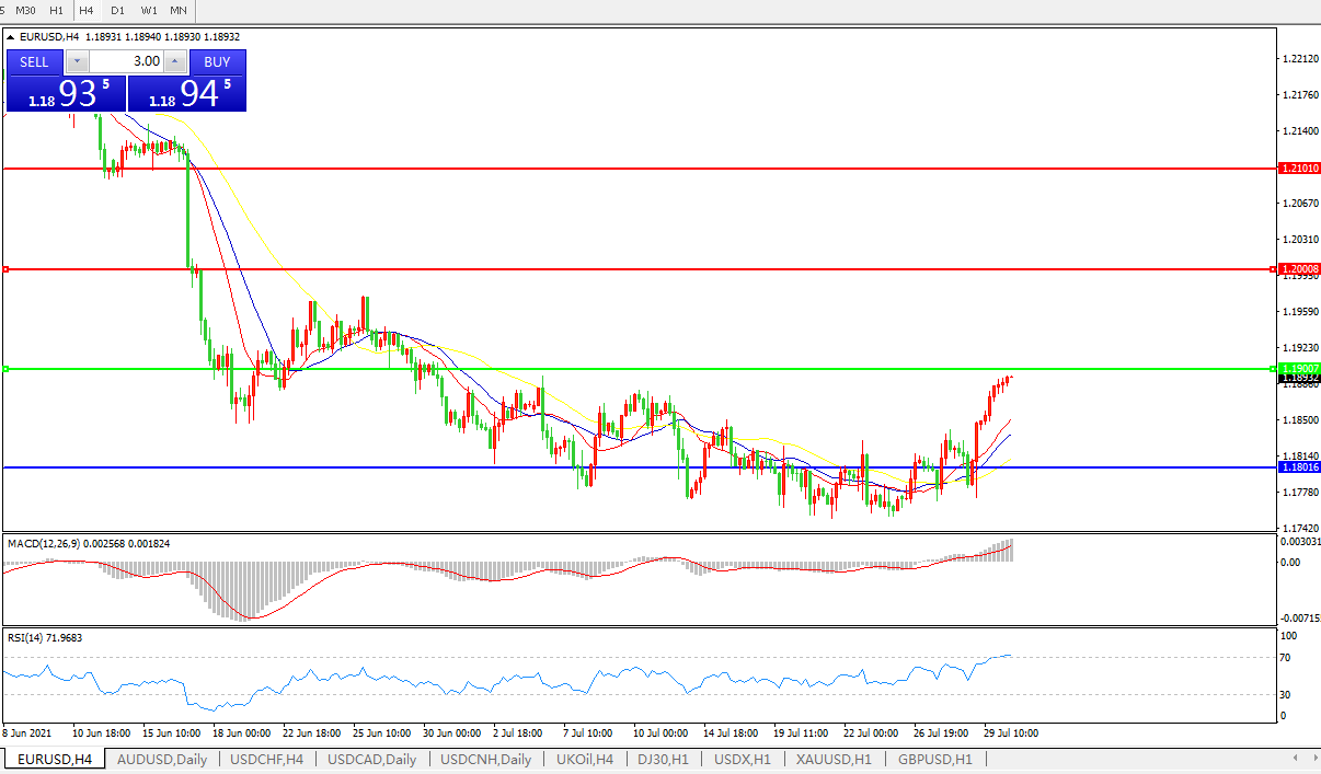 备选策略:1.1900下方看跌,目标1.1800、1.1700