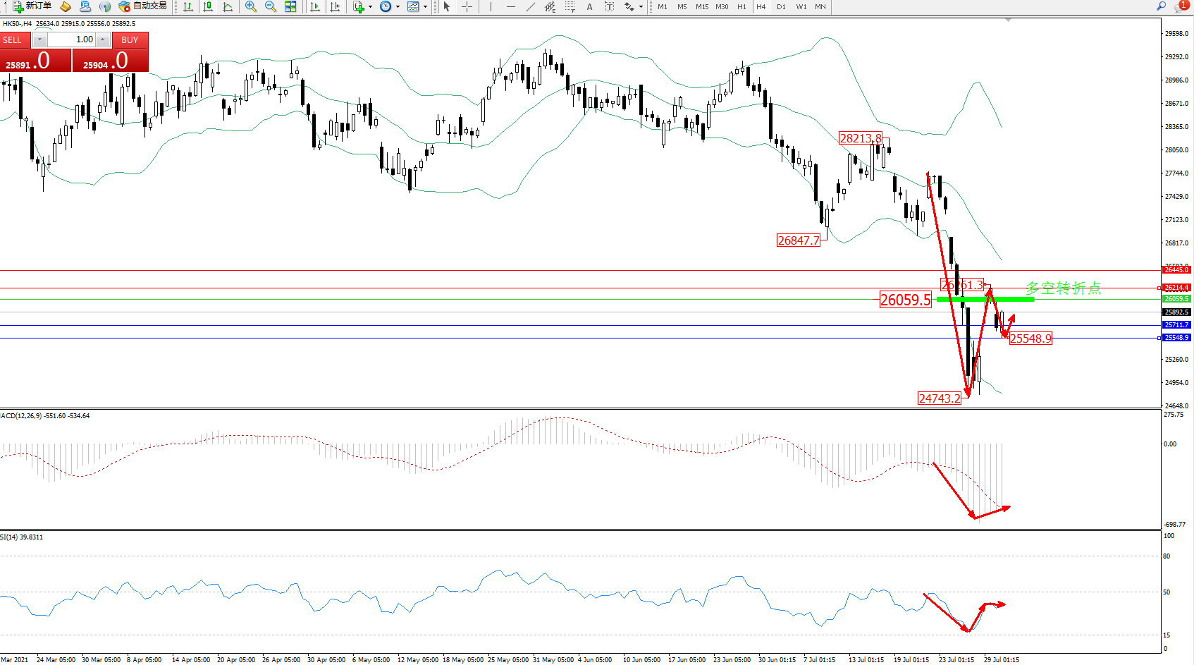 恒指HK50 ——4小时K线图显示: