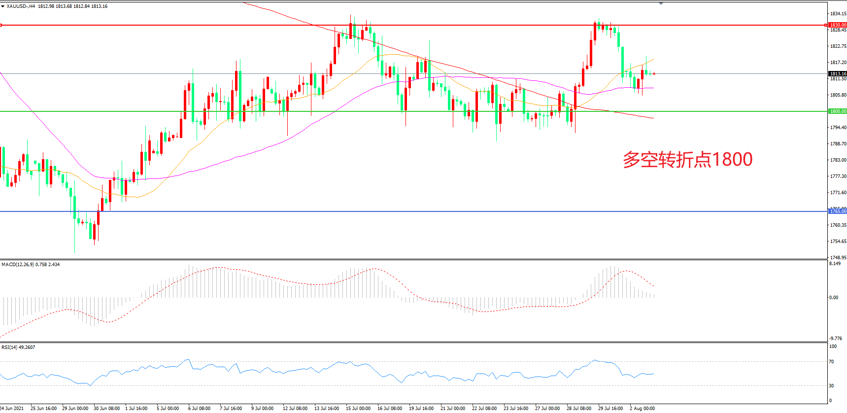 交易策略:  在1800.00之上看涨,目标1830.00       1860.00