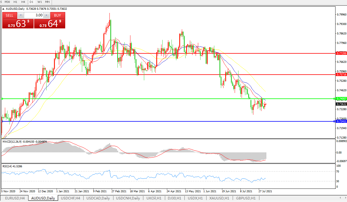 交易策略:0.7400下方看跌,目标0.7240、0.7080
