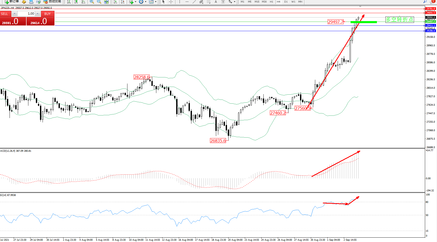 日经225指数9月3日(周五)收盘上涨560.99点,涨幅1.97%,报29104.50点。日本股市攀升至30年高点,此前首相菅义伟将卸任的计划引发了市场对于他的继任者将增加刺激支出并更善于应对疫情的乐观预期。基准东证指数上涨1.6%,升至1991年4月以来的最高水平,日经225指数上涨2.1%。日本股市在亚洲表现最佳,东证指数中的所有33个行业板块均走高。这对股市有利,因为首相换人,市场就会对政策举措抱有期许,这可能一定程度上是日本股市的一个转折点。