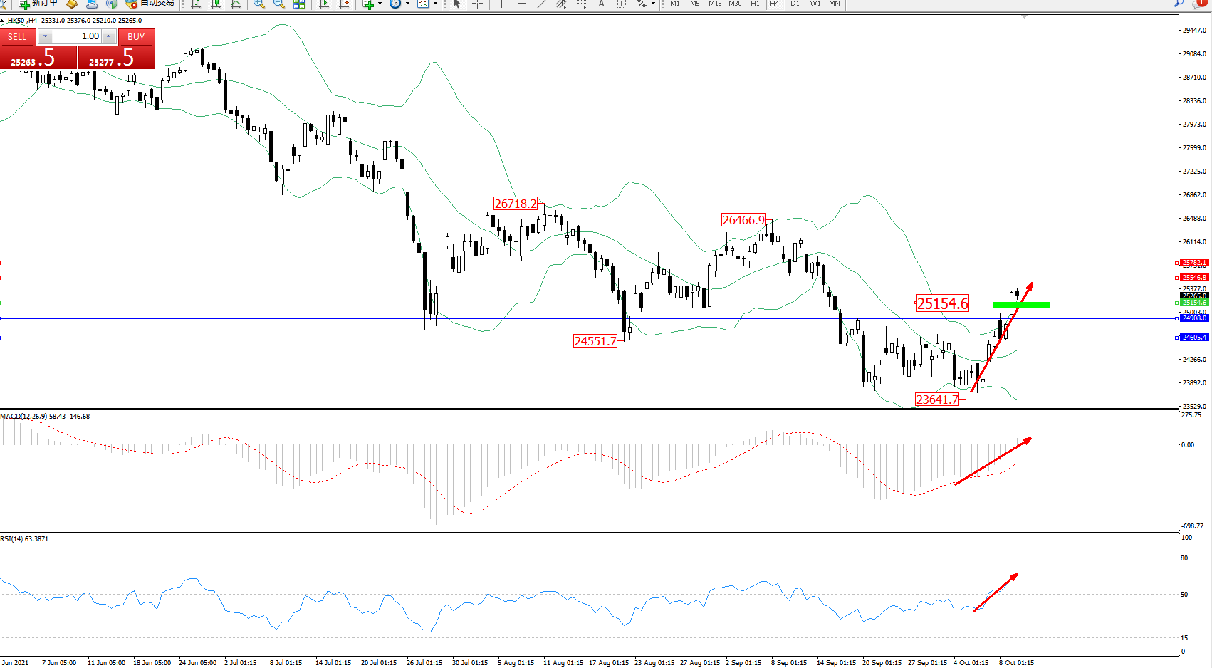 恒指HK50 ——4小时K线图显示: