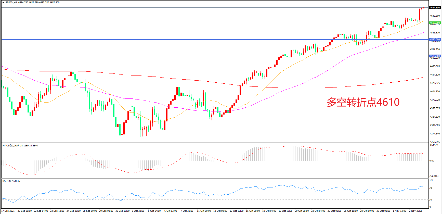 多空转折点:4610.00