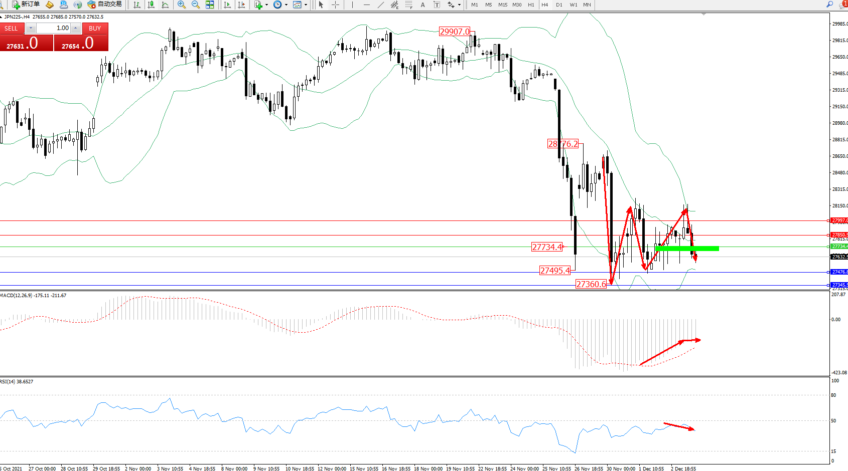 交易策略:27734下方看跌,目标27476、27345