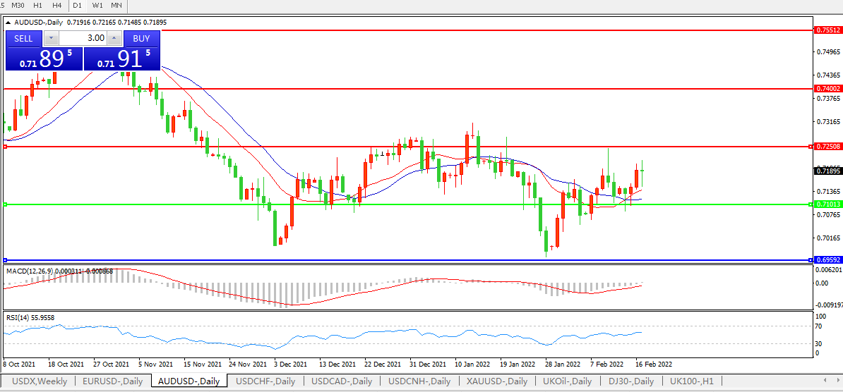 交易策略:0.7100上方看涨,目标0.7250、0.7400