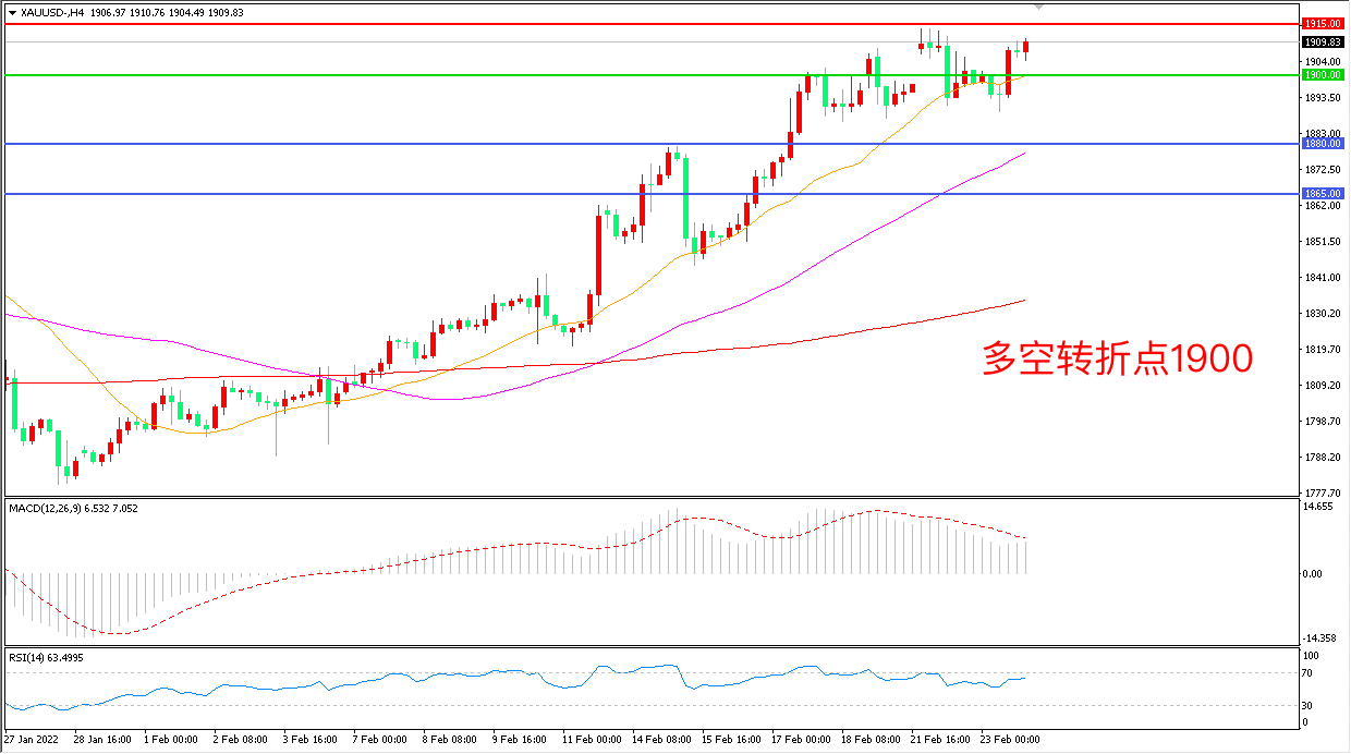 交易策略:在1900.00之上看涨,目标1915.00       1930.00