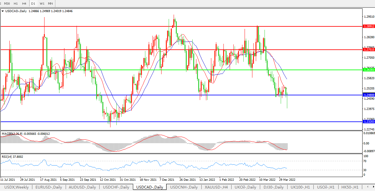 技术面简析:日图均线呈空头排列,汇价止跌反弹,MACD运行于0轴下且量能小幅放量,RSI依旧弱势,预计短期汇价大概率将在反弹后进一步下行。