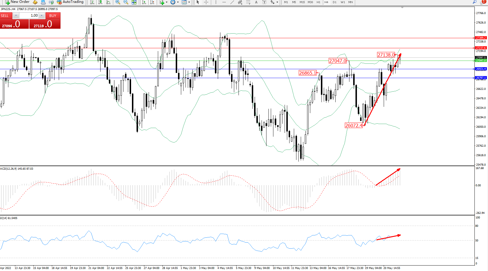 交易策略:27047上方看涨,目标27237、27389