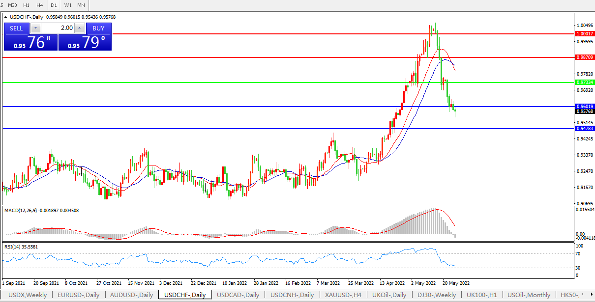 美元兑瑞郎USDCHF 日线图:
