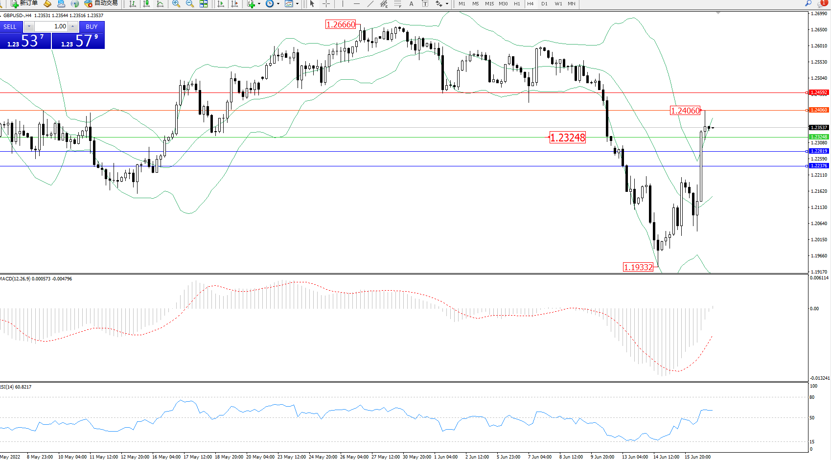 英镑美元GBPUSD ——4小时K线图显示: