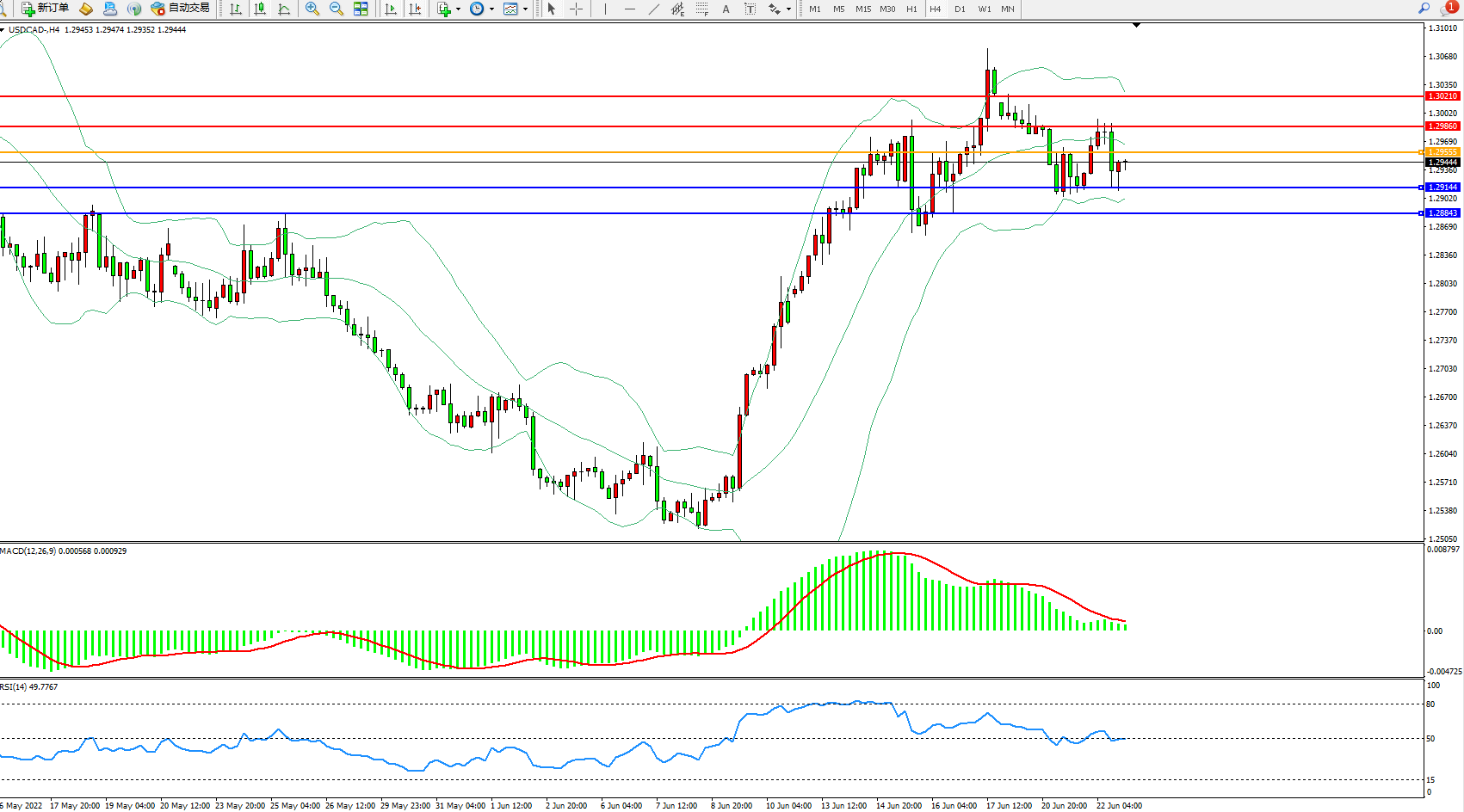 美元兑加元维持1.29472附近震荡,加拿大5月CPI年率达到7.7%,创1983年以来新高,加大了该国央行在未来几周继续积极加息的压力。