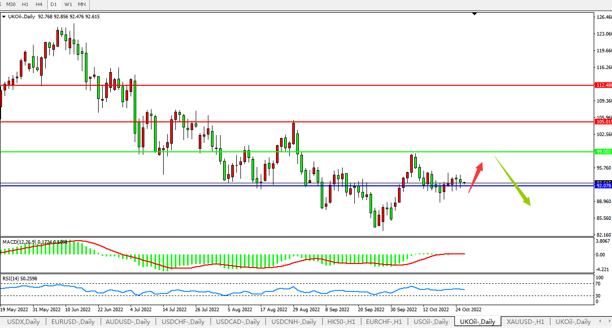 日线图看:短线价格小幅窄幅整理蓄势,短期图形结构中性偏强, MACD量能柱0轴上若隐若现,RSI走势平缓无方向,短期油价有进一步反弹需求,中期依旧滚动做空。