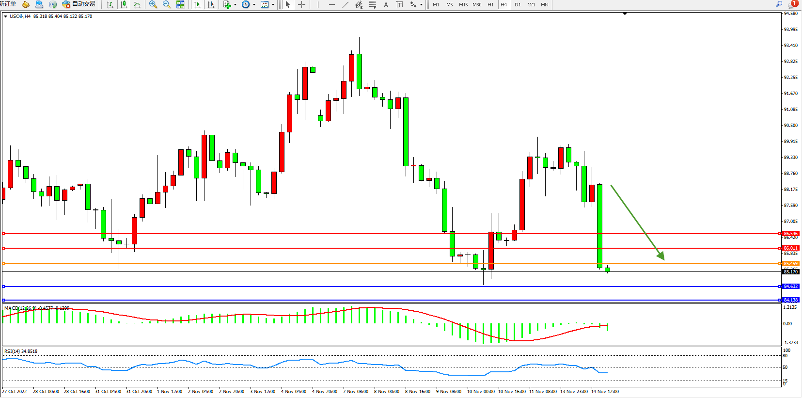 原油USOil——4小时K线图显示: