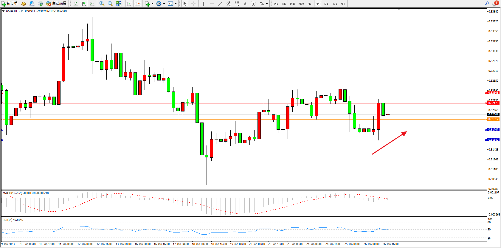 备选策略:0.91917下方看跌,目标0.91747、0.91582